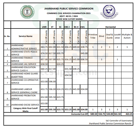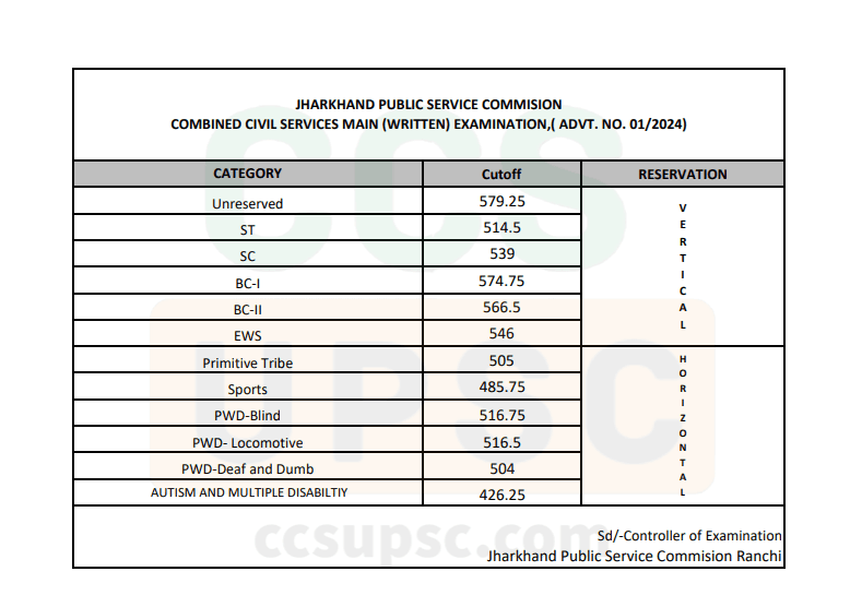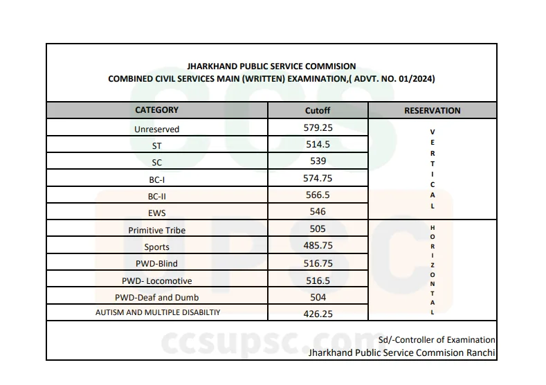 11th JPSC Mains — Category-wise Cutoff Marks
